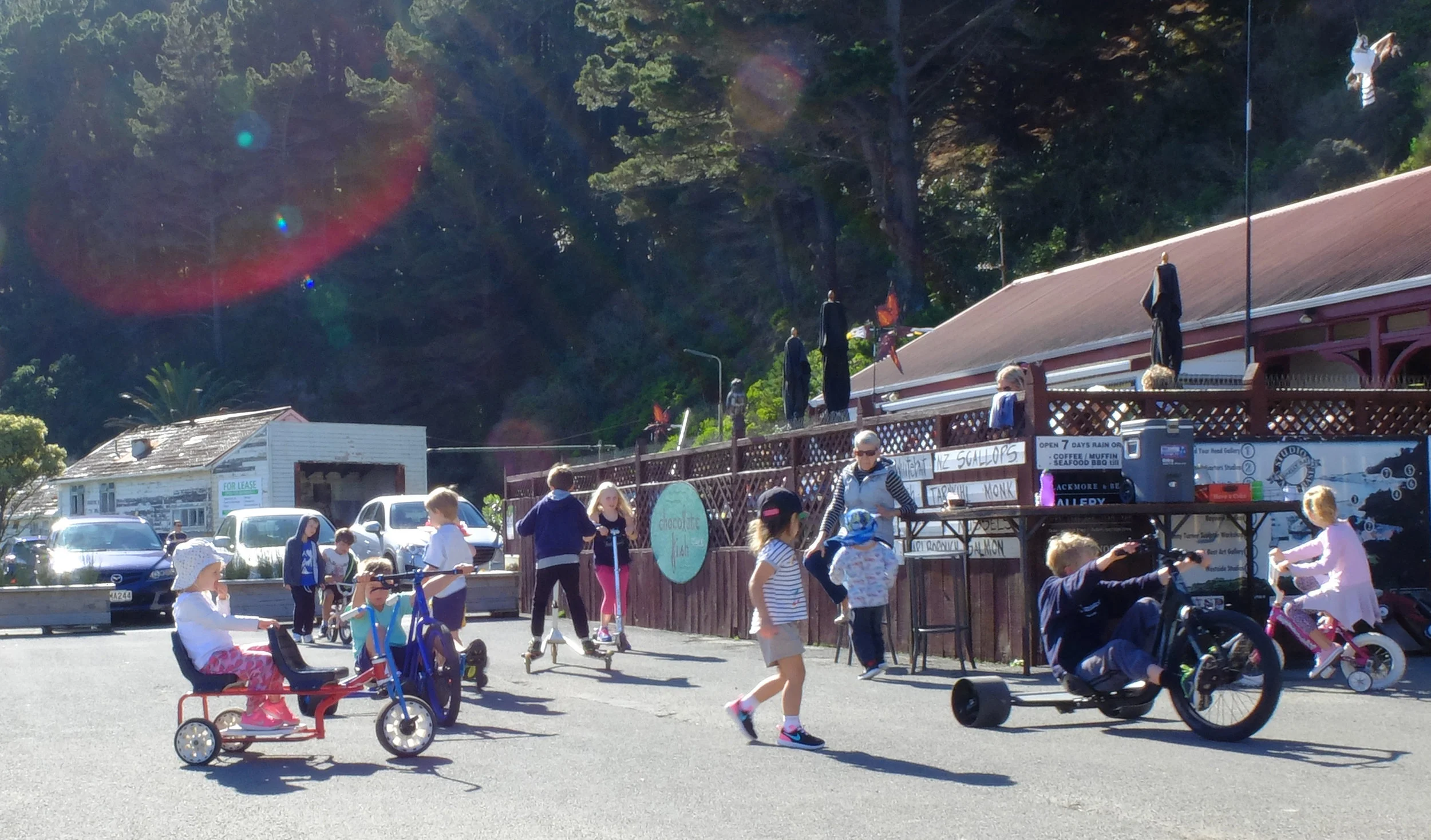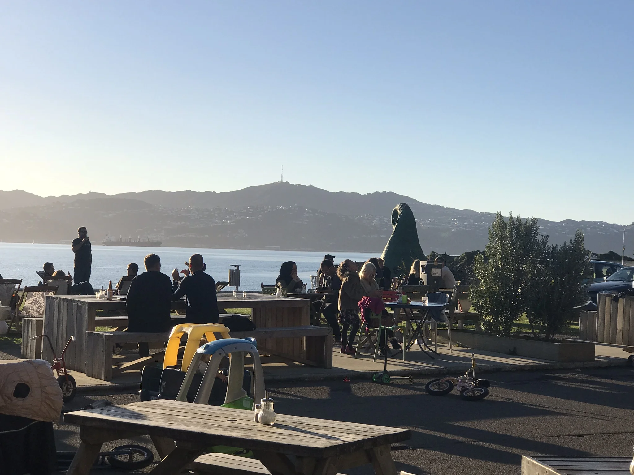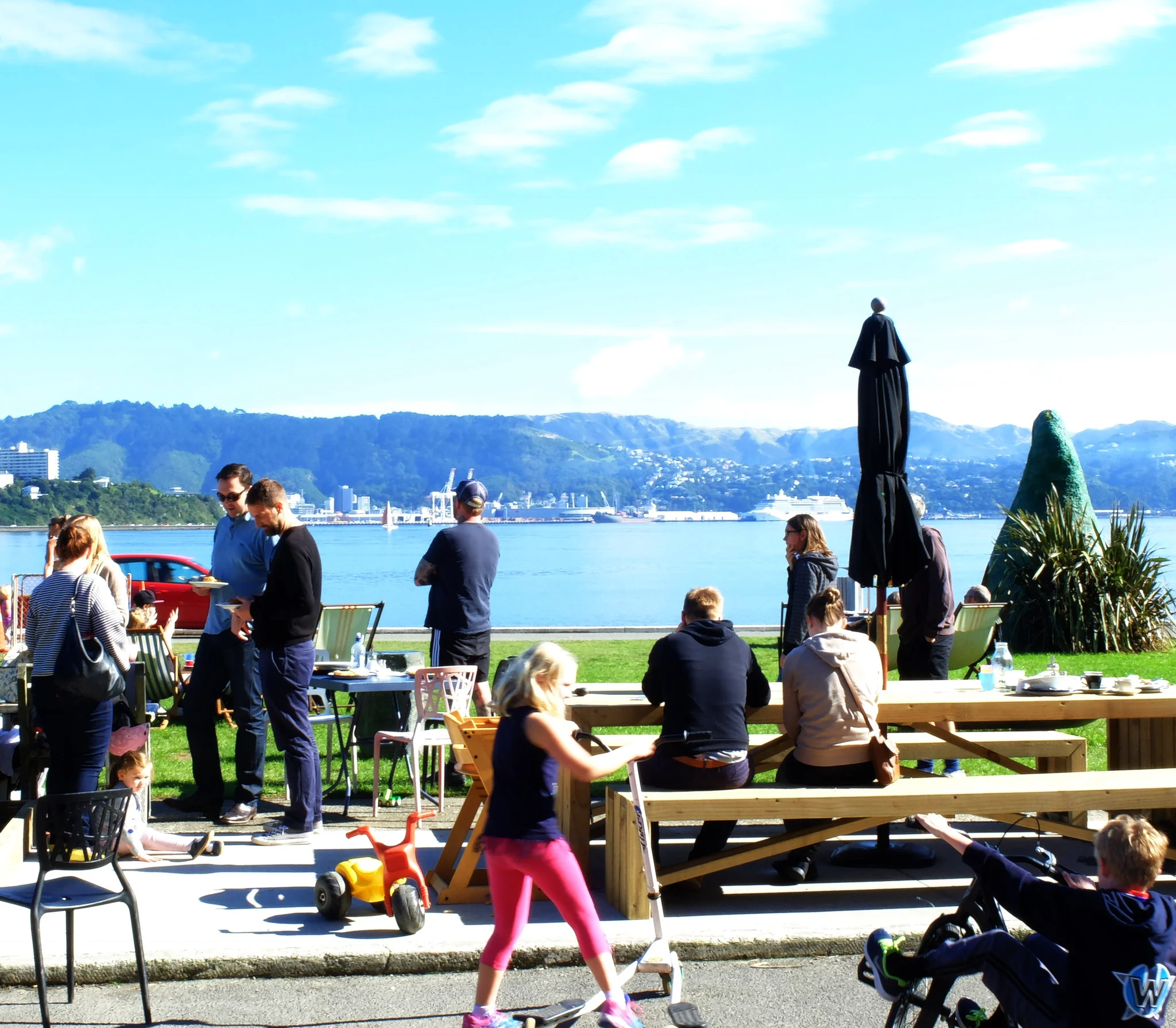 We have loads of outdoor space. With beanbags on the grass, bikes for the kids and seating for plenty, our outdoor space is a great place to enjoy Wellington's summer weather.