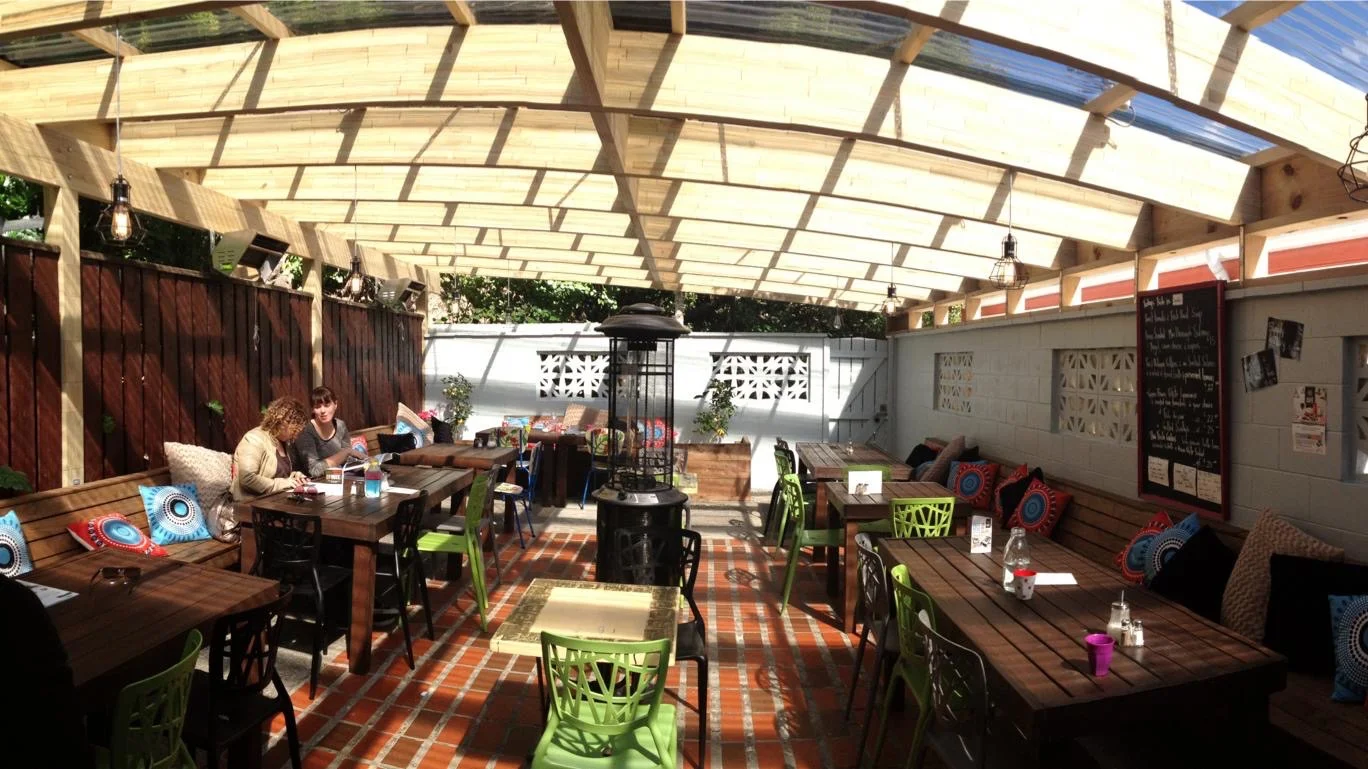 When the weather isn't so great, or you just want to stay out of the sun, we have two indoor spaces and a covered courtyard to enjoy.